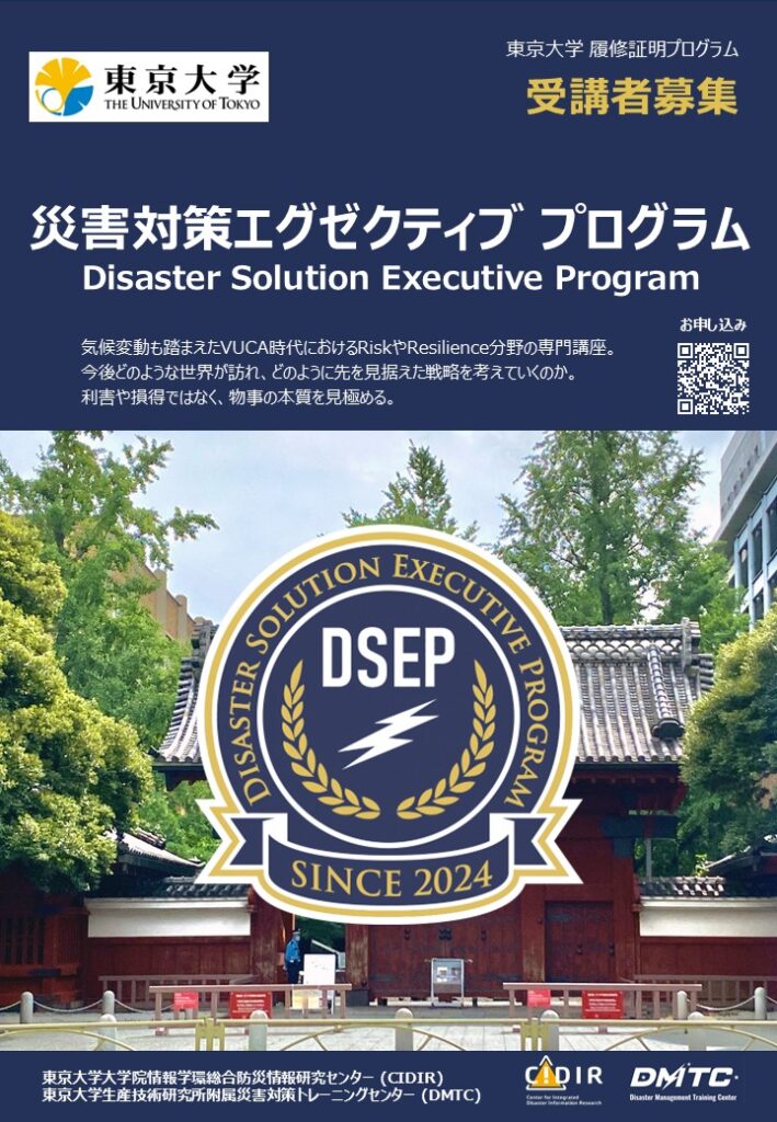 そこでDSEPでは、レジリエンスの高い社会を目指し、リスクやレジリエンスにかかわる分野のリーダーを養成することを目的に、体系的かつ先端的なリスクやレジリエンスに関する幅広い講義を提供するとともに、研究プロジェクトとして世界が直面している複雑な課題に取り組みます。