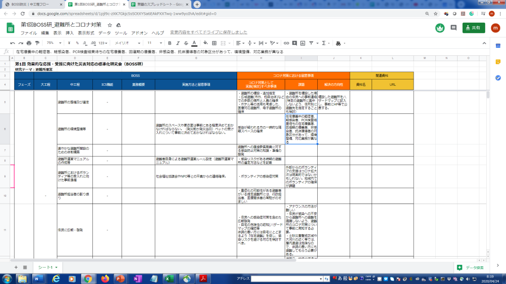 2020年4月23日に第1回 BOSS研を開催しました。35名の方がオンライン研究会に参加し、避難所についての対応を考えました。北海道標茶町の避難所開設の体験も共有でき、多くの知見を参加者間で得ました。