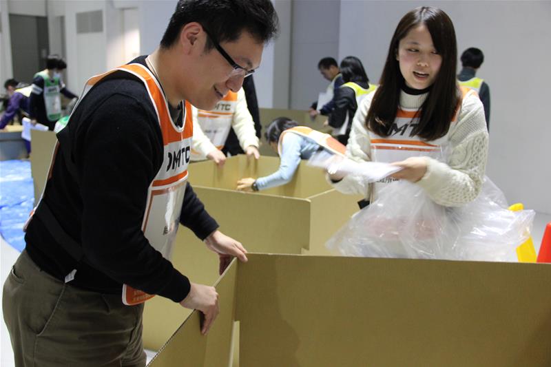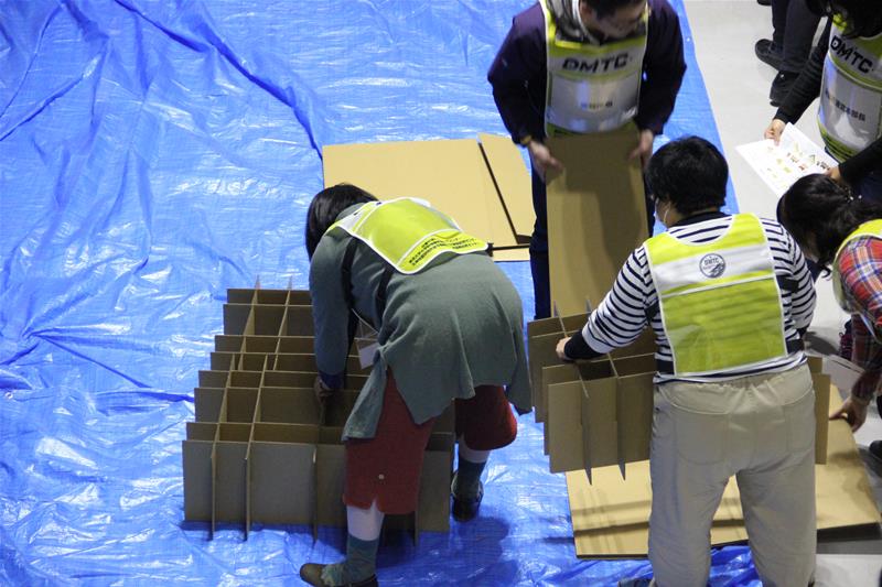 避難所のダンボールベッドと仕切