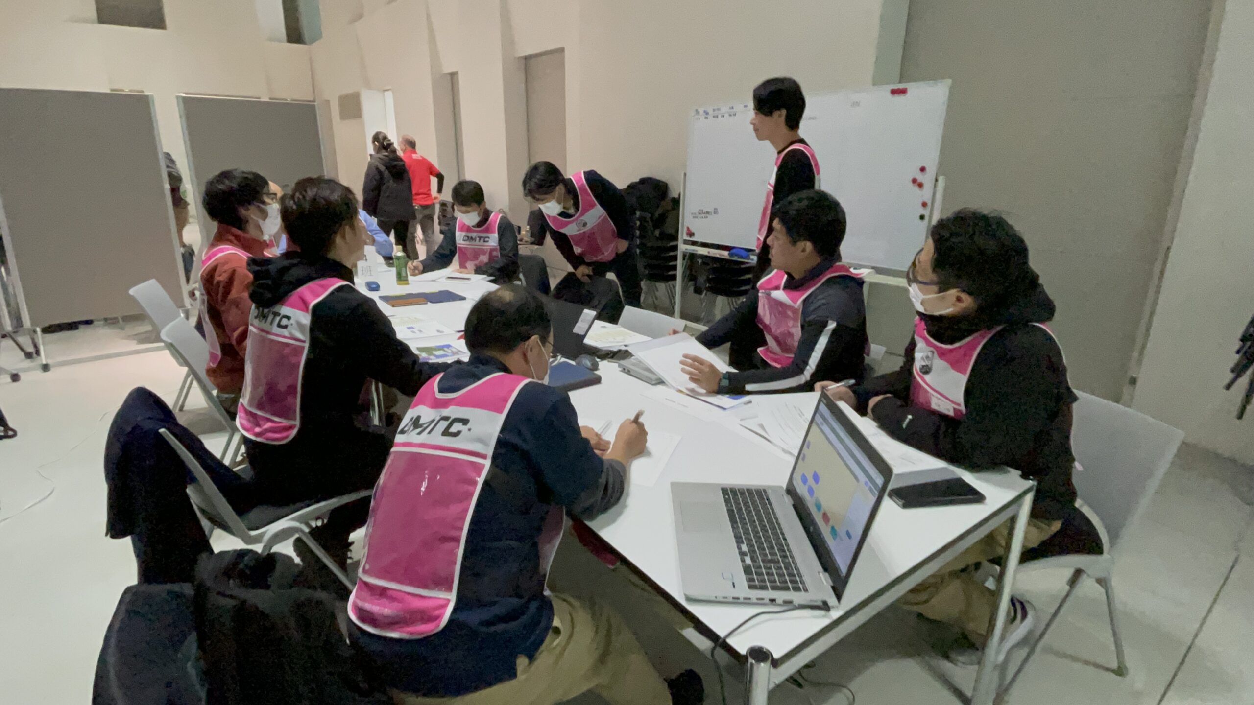 午後には、 災害対策本部における情報伝達を主とした運営の演習を行いました。今回も、企業向けのシナリオについて、本社・支社・協力会社の連携体制などを踏まえた形式としました。