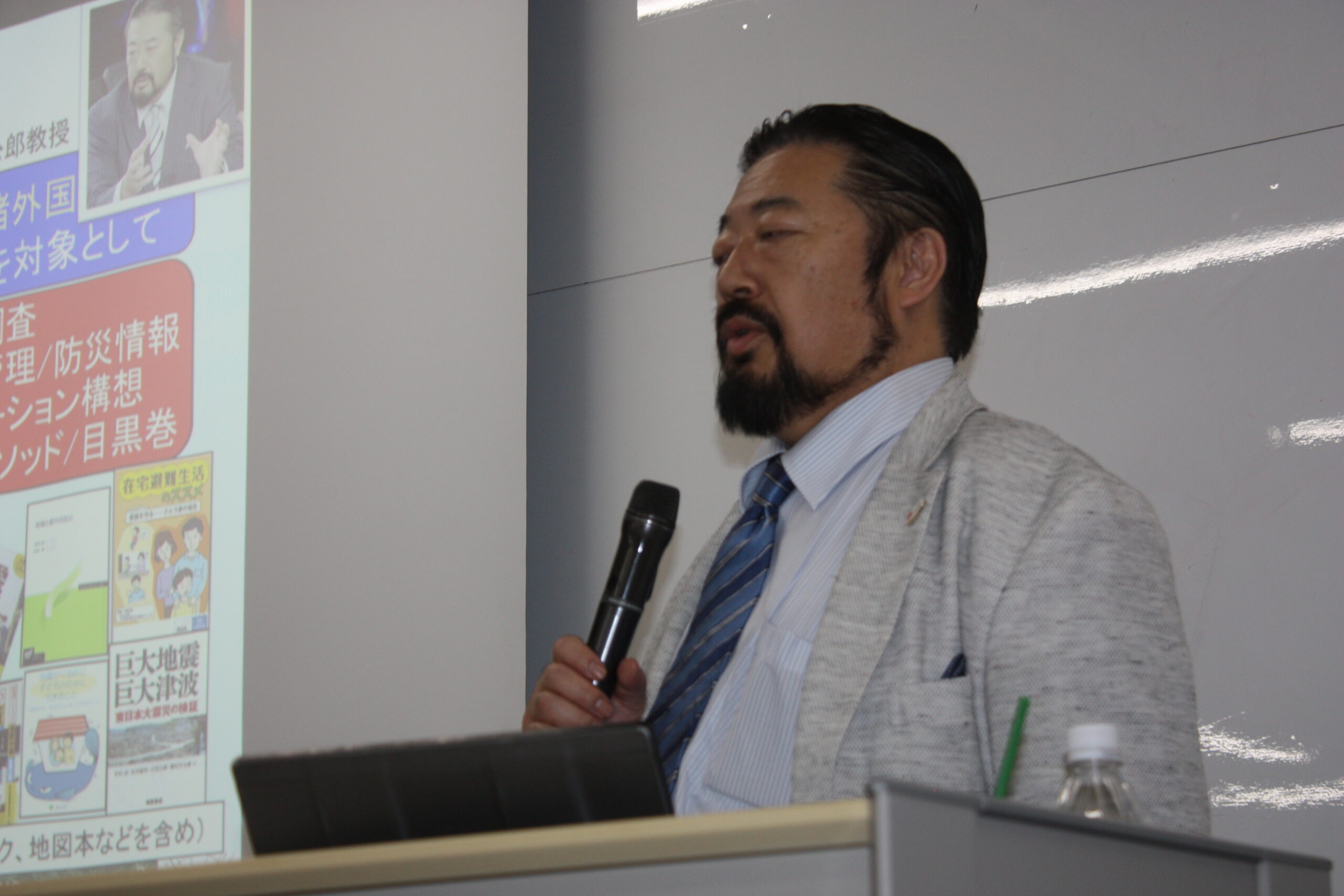 講義の中で、目黒先生はご自身の研究分野と絡めて、災害対策における基本的な考え方などについて話していただきました。