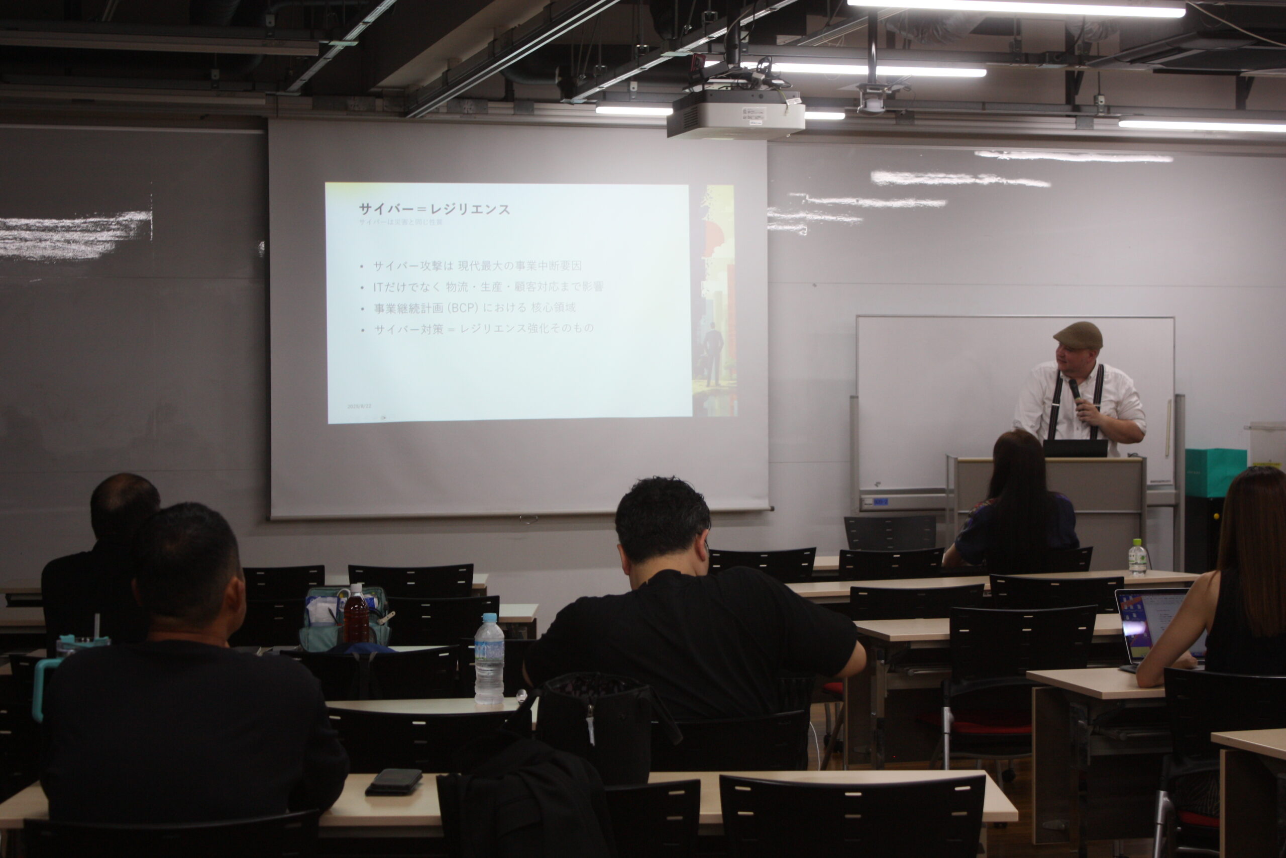 講義の中で、セルジオ先生にはサイバー攻撃にまつわる実際の事例や、その対策のためのサイバー・レジリエンスについて話していただきました。