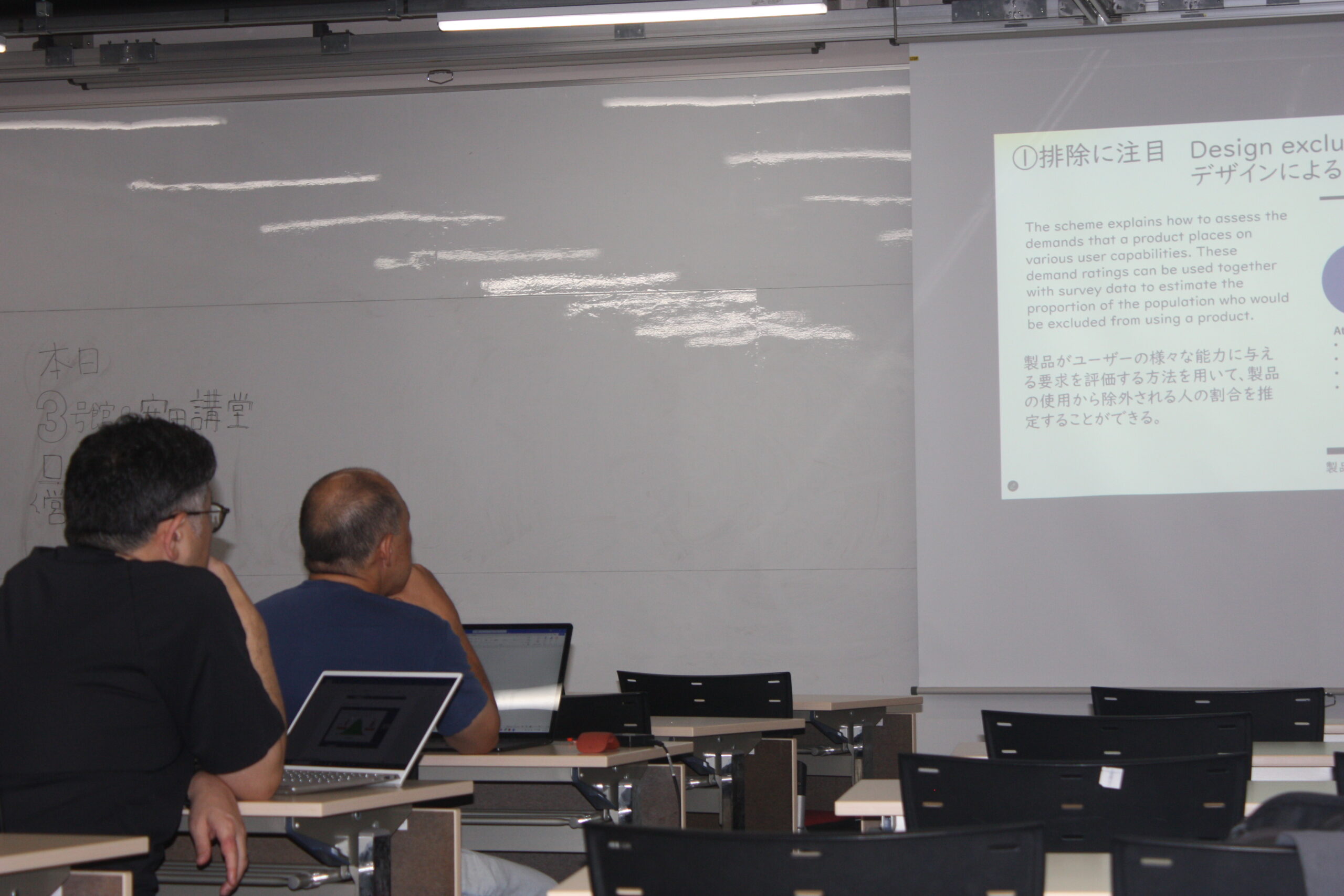 講義の中で、並木先生には障害の正しい捉え方やインクルーシブデザインの概念、障害と研究の在り方について話していただきました。
