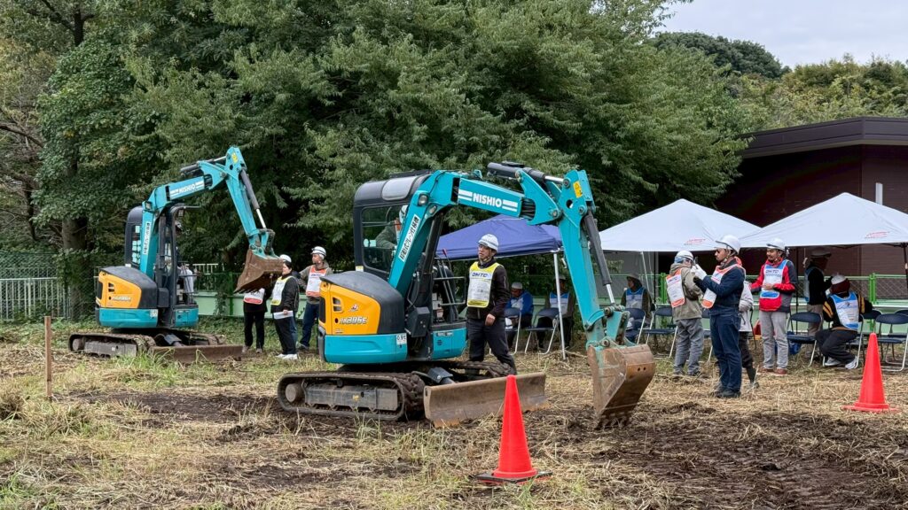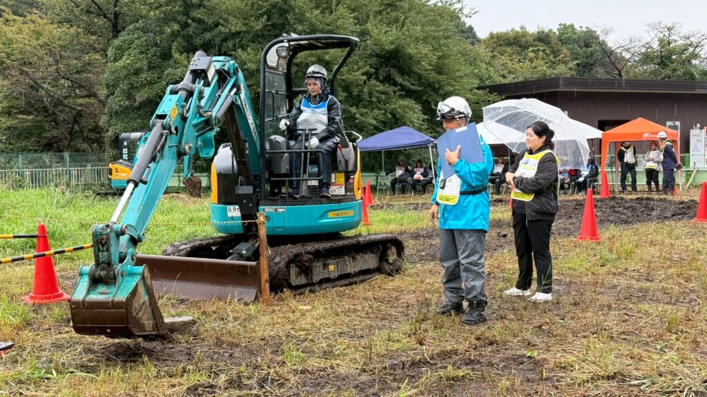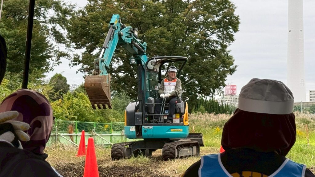 参加者は、初めて操縦するバックホウの操作に苦しみながらも基本的な操縦ができるようになりました。