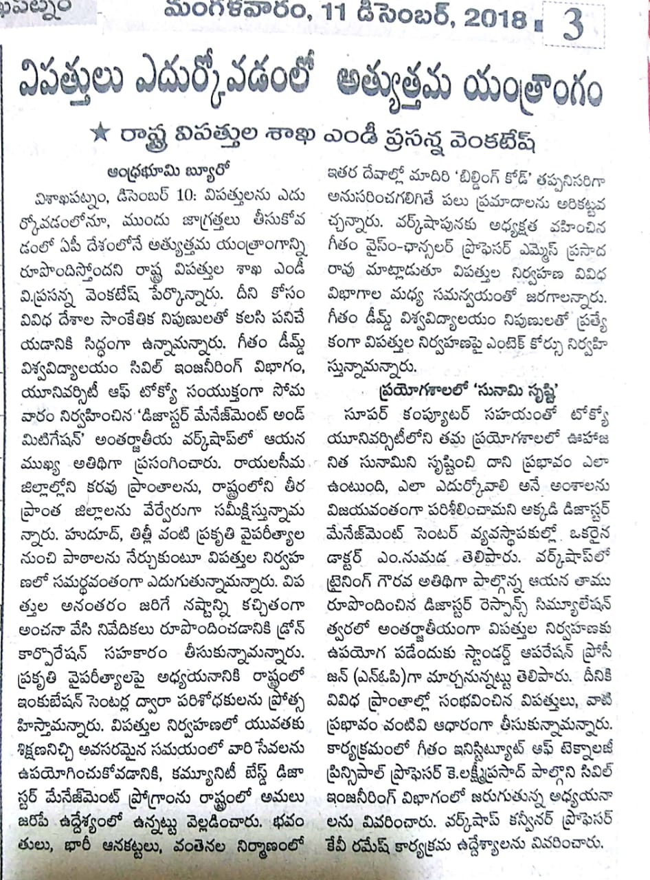 インドにあるガンジー工科経営大学GITAMでトレーニングを実施