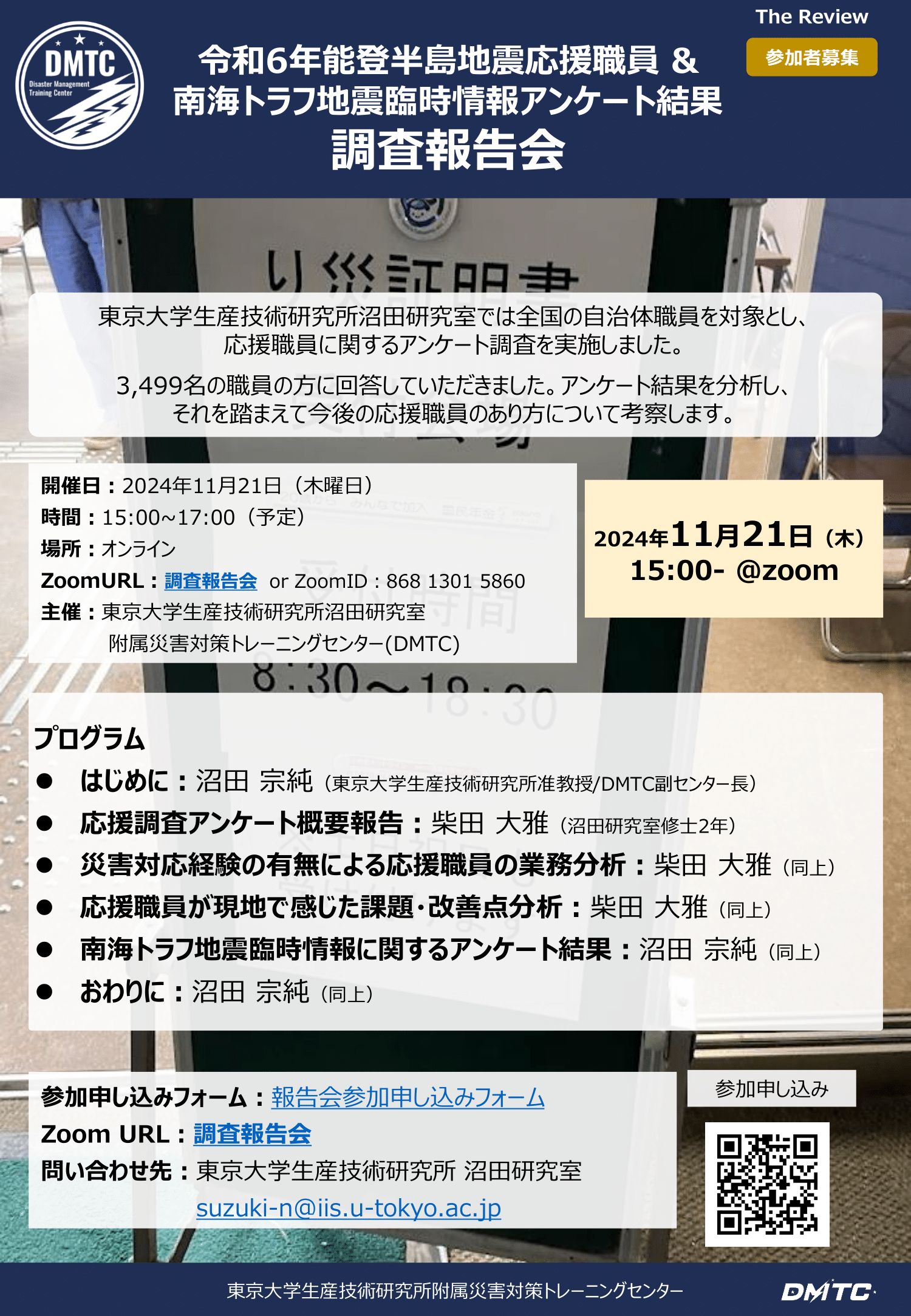 主催:東京大学生産技術研究所沼田研究室附属災害対策トレーニングセンター(DMTC)