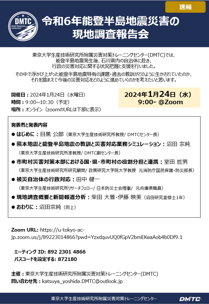 主催:東京大学生産技術研究所附属災害対策トレーニングセンター(DMTC)
