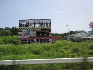 当時被害を受け壁が壊れたままになっているゲームセンター