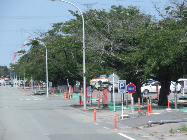 沿道の土地に仮置きされている除去物質