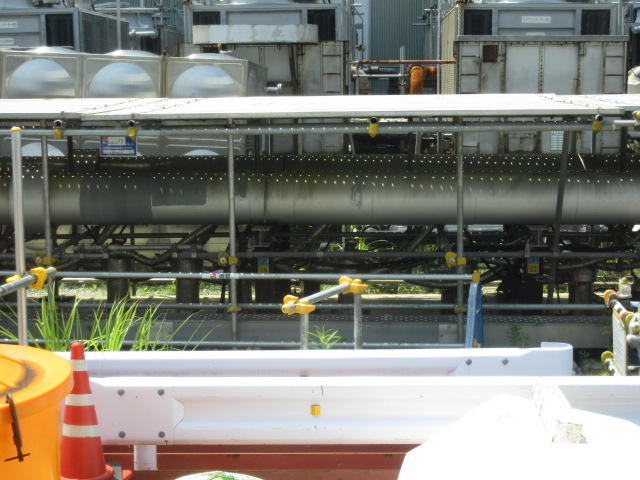 冷媒の管が分岐して地下に差し込まれている様子