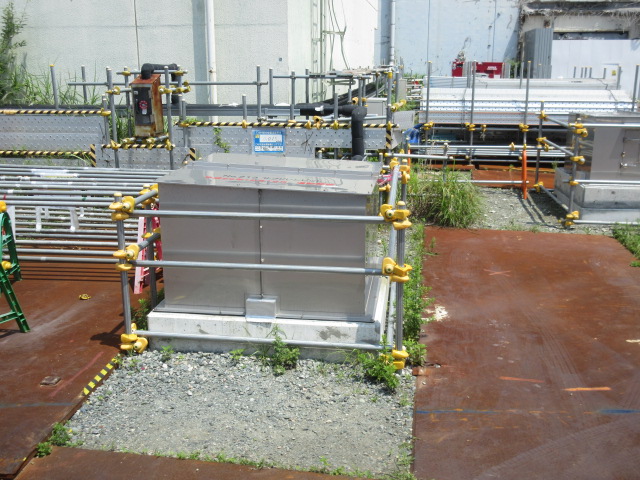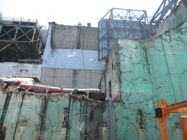 2号機、3号機間の通路から見る2号機建屋