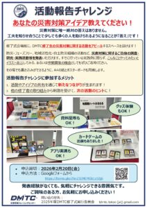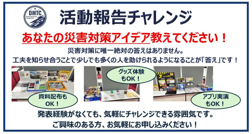 皆さまの災害対策に関する活動をアピールするチャンス!是非奮ってご参加ください!